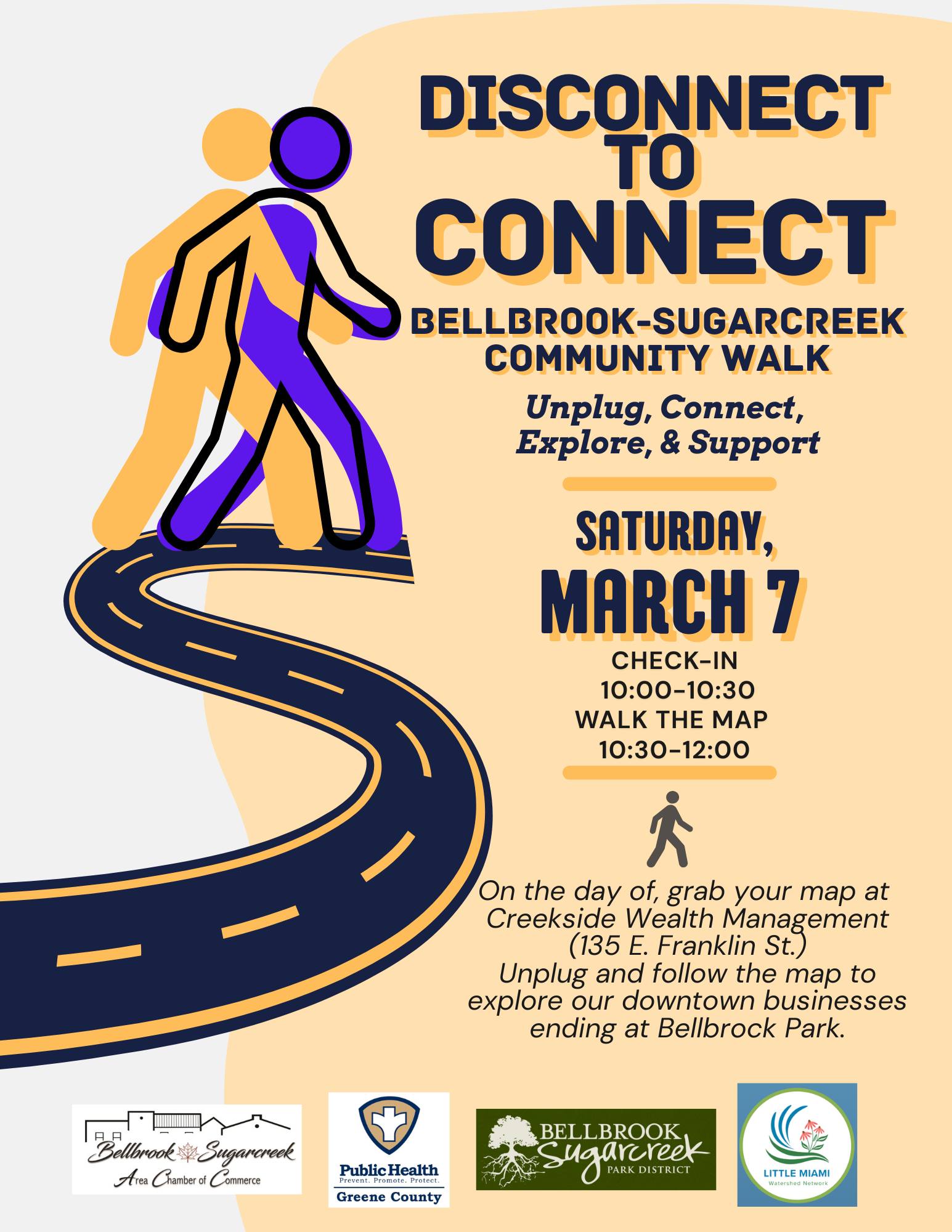 Unplug, get moving, and join us for a fun community walk through downtown Bellbrook, and steps away from the Little Miami River!