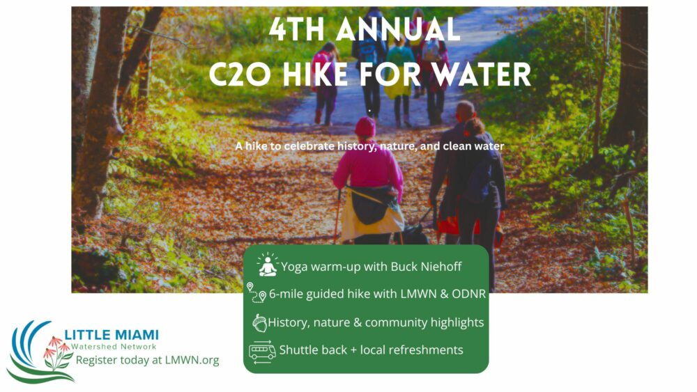 Little Miami State Park - Corwin 69 Maple Street, Waynesville, OH4th Annual Corwin to Oregonia Hike for Water! Enjoy a walk with LMWN leadership while supporting future educational and cleanup experiences throughout the watershed! $25 per person includes: Stretch & start with yoga instructor Buck Niehoff Explore 6 miles of the longest state park, Little Miami State Park, with LMWN & ODNR representatives. Guided hike […]